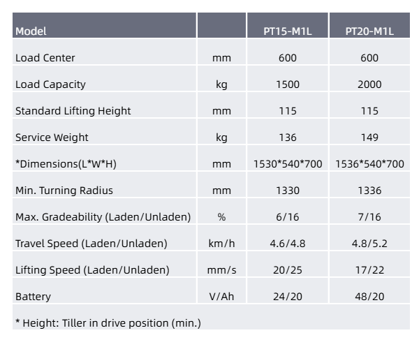 ● The tiller maintains a safe operating distance between the operator and the truck.
